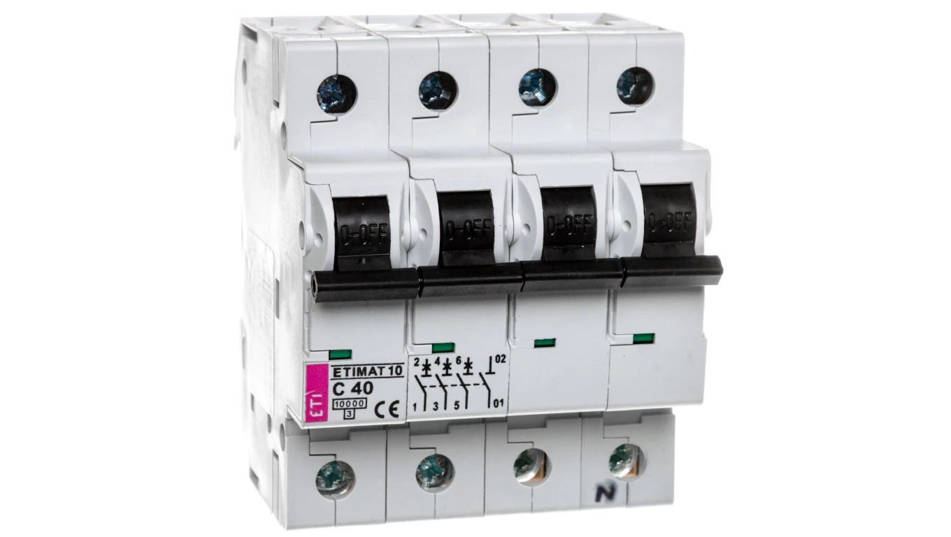 Wyłącznik nadprądowy ETIMAT 10 3p+N C40 o numerze katalogowym 002136720 w kategorii Wyłączniki nadprądowe 6kA, Wyłączniki nadprądowe. Produkt wyprodukowany przez markę ETI.