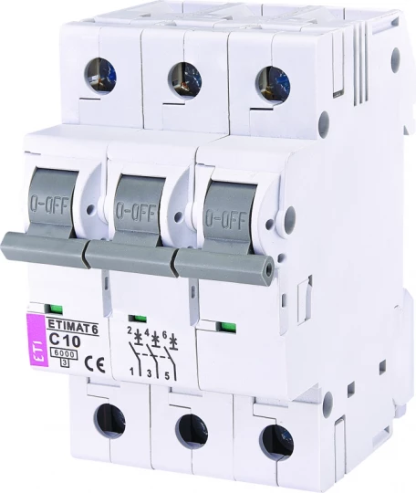 Wyłącznik nadprądowy ETIMAT 6 3p C10 o numerze katalogowym 002145514 w kategorii Wyłączniki nadprądowe 6kA, Wyłączniki nadprądowe. Produkt wyprodukowany przez markę ETI, seria ETIMAT.