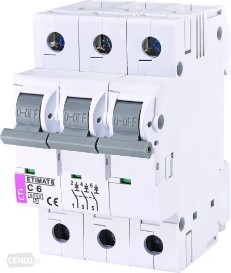 Wyłącznik nadprądowy ETIMAT 6 3p C6 o numerze katalogowym 002145512 w kategorii Wyłączniki nadprądowe 6kA, Wyłączniki nadprądowe. Produkt wyprodukowany przez markę ETI, seria ETIMAT.