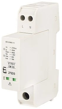 Modułowy ogranicznik przepięć ETITEC CM T23 275/20 2+0 o numerze katalogowym 002440650 w kategorii Ograniczniki przepięć - pozostałe, Ograniczniki przepięć. Produkt wyprodukowany przez markę ETI.