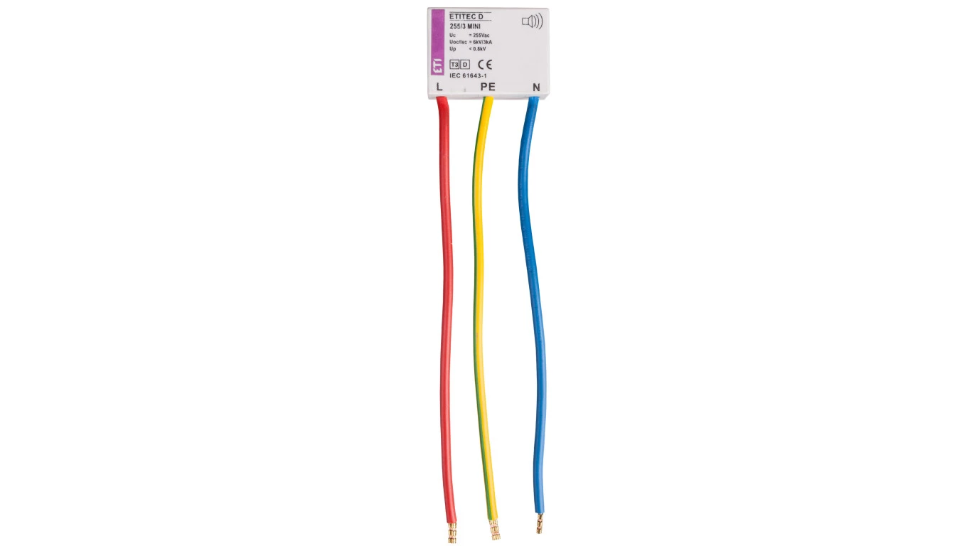 Moduł ogranicznika przepięć T3 (D) ETITEC D 255/3 MINI o numerze katalogowym 002441632 w kategorii Ograniczniki przepięć typ 3, Ograniczniki przepięć. Produkt wyprodukowany przez markę ETI.