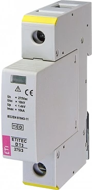 Ogranicznik przepięć T3 (D) ETITEC D T3 275/3 1+0 o numerze katalogowym 002440417 w kategorii Ograniczniki przepięć - pozostałe, Ograniczniki przepięć. Produkt wyprodukowany przez markę ETI, seria ETITEC.