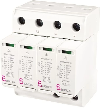Modułowy ogranicznik przepięć ETITEC ML T123 300/12,5 4+0 o numerze katalogowym 002440667 w kategorii Ograniczniki przepięć - pozostałe, Ograniczniki przepięć. Produkt wyprodukowany przez markę ETI.