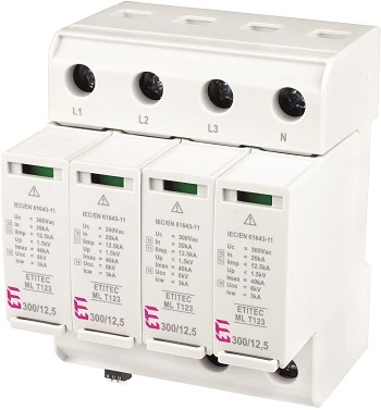 Modułowy ogranicznik przepięć ETITEC ML T123 300/12,5 4+0 RC o numerze katalogowym 002440668 w kategorii Ograniczniki przepięć - pozostałe, Ograniczniki przepięć. Produkt wyprodukowany przez markę ETI.