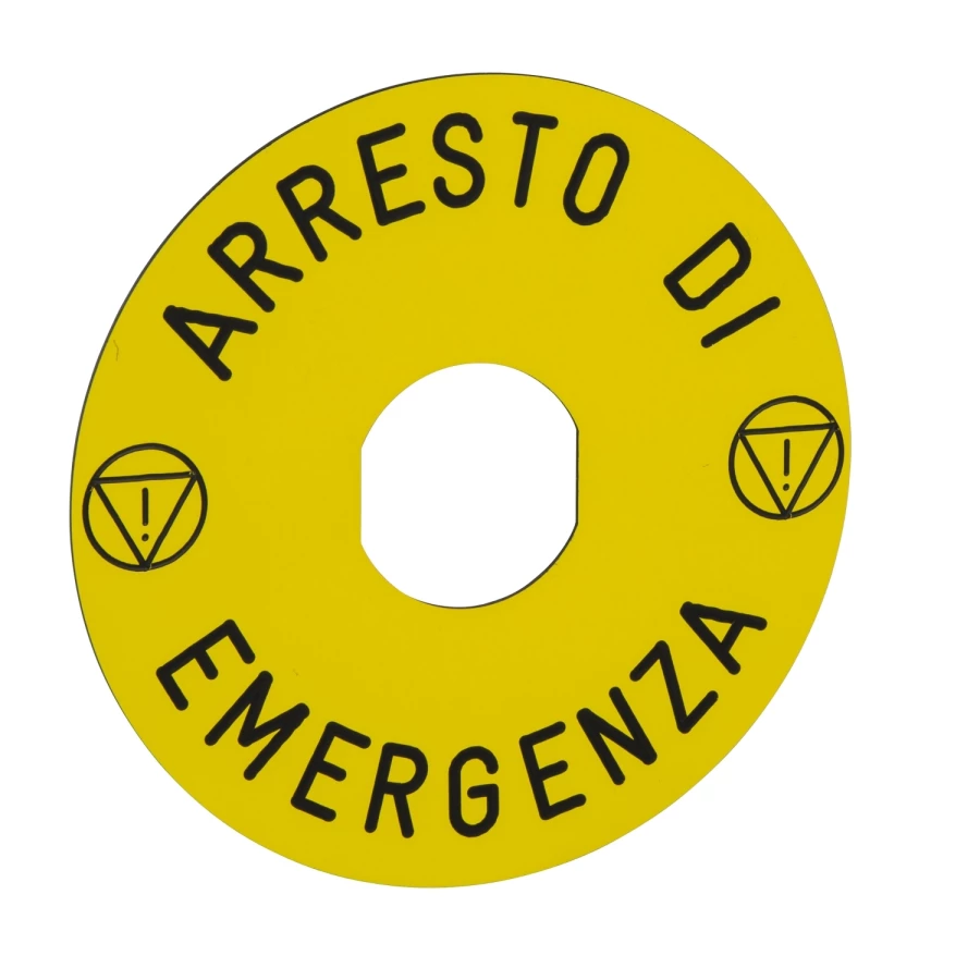 Etykieta ozn.-O90 do przyc. awar. zatrzym. ARRESTO DE EMERGENCA/logo ISO13850 ZBY8630