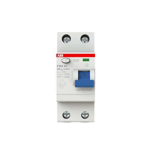 Wyłącznik różnicowo-prądowy, 2P, AC, 25A, 300mA, bezzwłoczny F202 AC-25/0.3 o numerze katalogowym   2CSF202001R3250 w kategorii Wyłączniki różnicowoprądowe>Wyłączniki różnicowoprądowe typ AC. Produkt wyprodukowany przez markę ABB, seria F200.