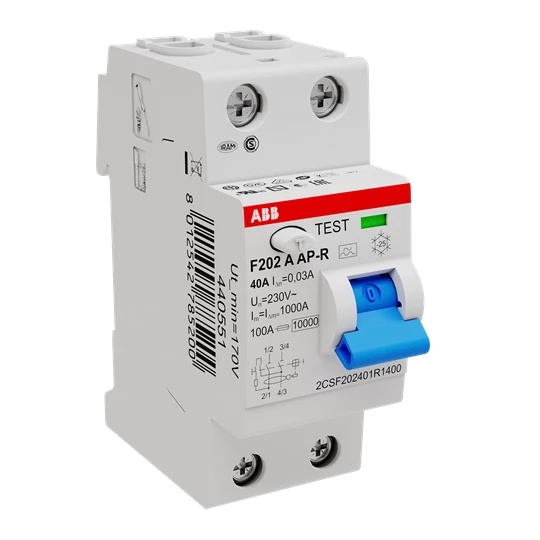 Wyłącznik różnicowo-prądowy, 2P, A, 40A, 30mA, krótkozwłoczny F202 A-40/0.03 AP-R o numerze katalogowym   2CSF202401R1400 w kategorii Wyłączniki różnicowoprądowe>Wyłączniki różnicowoprądowe typ A. Produkt wyprodukowany przez markę ABB, seria F200.