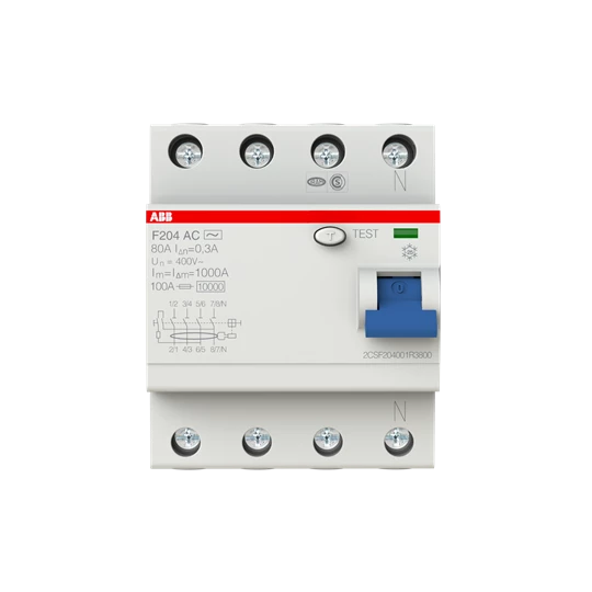 Wyłącznik różnicowo-prądowy, 4P, AC, 80A, 300mA, bezzwłoczny F204 AC-80/0.3 o numerze katalogowym   2CSF204001R3800 w kategorii Wyłączniki różnicowoprądowe>Wyłączniki różnicowoprądowe typ AC. Produkt wyprodukowany przez markę ABB, seria F200.