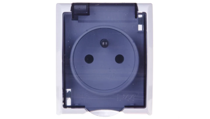 FALA BIAŁY GNIAZDO NT 1X Z/U Z KLAPKĄ DYMNĄ IP44 ZACISKI ŚRUBOWE 16A 250V