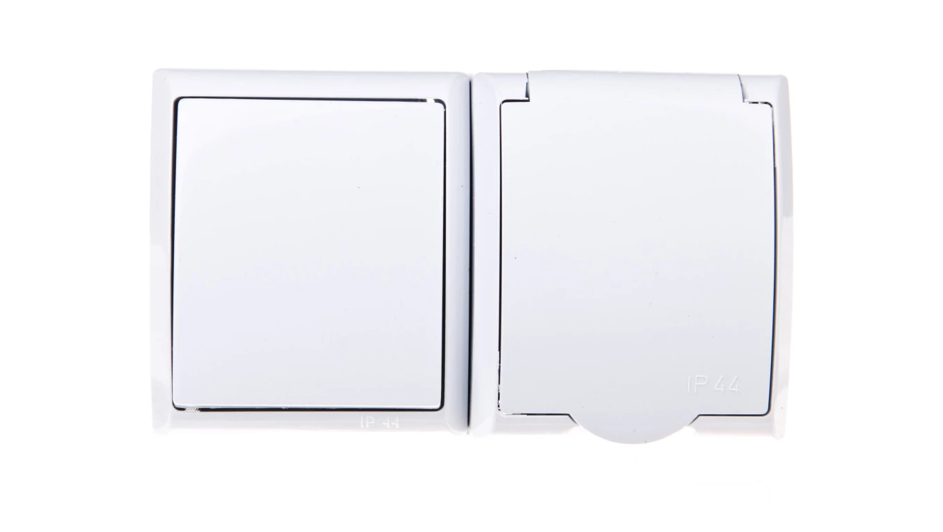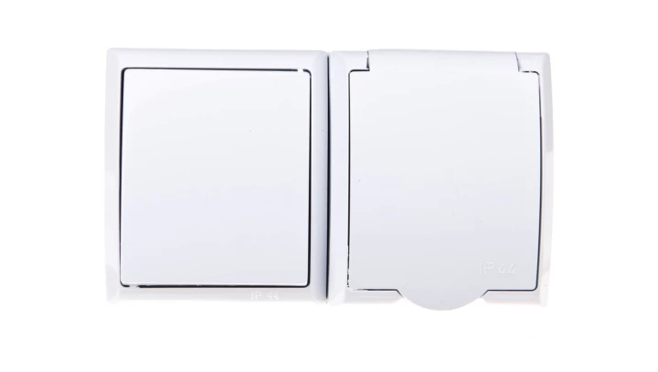 FALA BIAŁY GNIAZDO NT 1X Z/U Z KLAPKĄ + ŁĄCZNIK NT 1-BIEGUNOWY ZACISKI ŚRUBOWE 16A 250V IP44