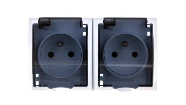 HYDRO Gniazdo hermetyczne podwójne z/u IP44 z klapką dymną białe 121436