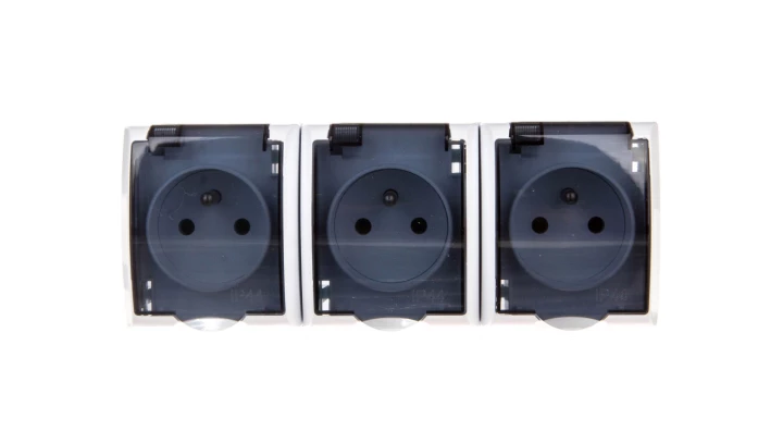 Simon Aquarius Gniazdo hermetyczne potrójne z/u IP54 z przesłona torów i klapką transparentną AQGZ1-3Z/11
