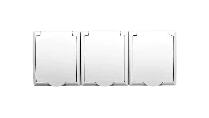 Simon Aquarius Gniazdo hermetyczne potrójne z/u IP54 z przesłona torów i klapką transparentną AQGZ1-3Z/11