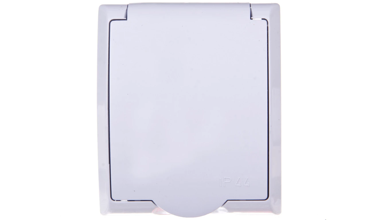 Simon Aquarius Gniazdo hermetyczne pojedyncze z/u IP54 z przesłoną torów i klapką pełną białe AQGZ1z/11