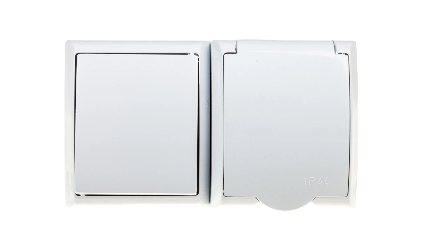 FALA BIAŁY GNIAZDO NT 1X Z/U Z KLAPKĄ + ŁĄCZNIK NT 1-BIEGUNOWY ZACISKI ŚRUBOWE 16A 250V IP44