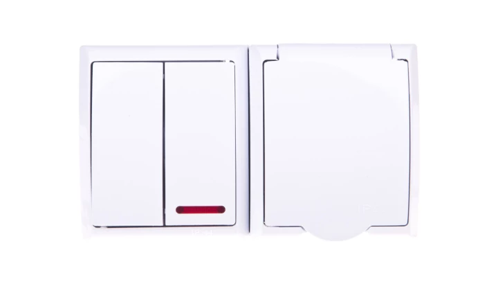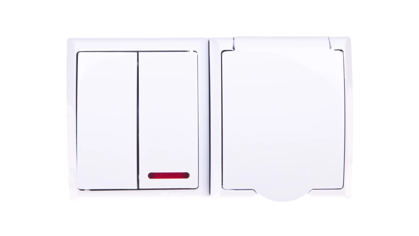 FALA BIAŁY GNIAZDO NT 1X Z/U Z KLAPKĄ + ŁĄCZNIK NT 1-BIEGUNOWY ZACISKI ŚRUBOWE 16A 250V IP44