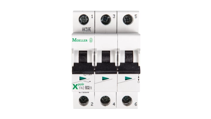 Wyłącznik nadprądowy serii 15kA 3-biegunowy FAZ-B32/3 o numerze katalogowym 278850 w kategorii Wyłączniki nadprądowe 15kA, Wyłączniki nadprądowe. Produkt wyprodukowany przez markę EATON, seria FAZ.