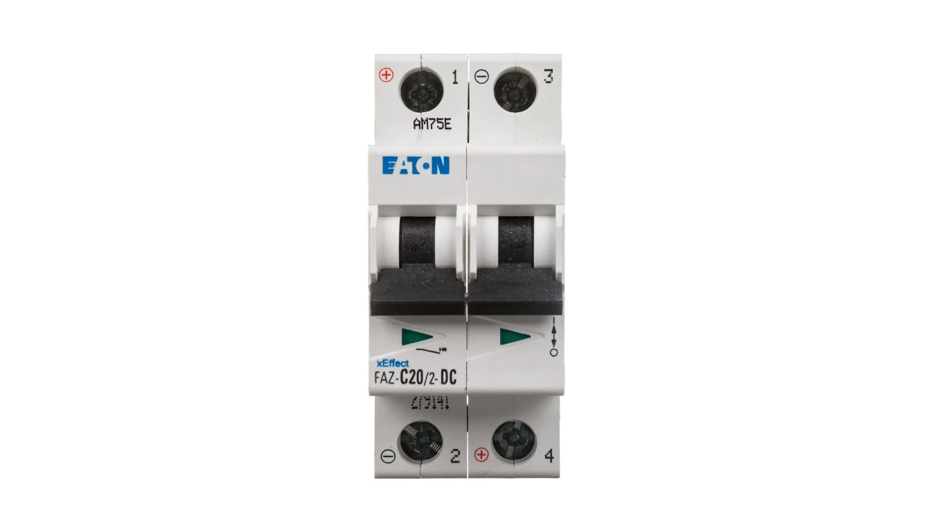 Wyłącznik nadprądowy na prąd stały 2-biegunowy FAZ-C20/2-DC o numerze katalogowym 279141 w kategorii Wyłączniki nadprądowe 15kA, Wyłączniki nadprądowe. Produkt wyprodukowany przez markę EATON, seria FAZ.