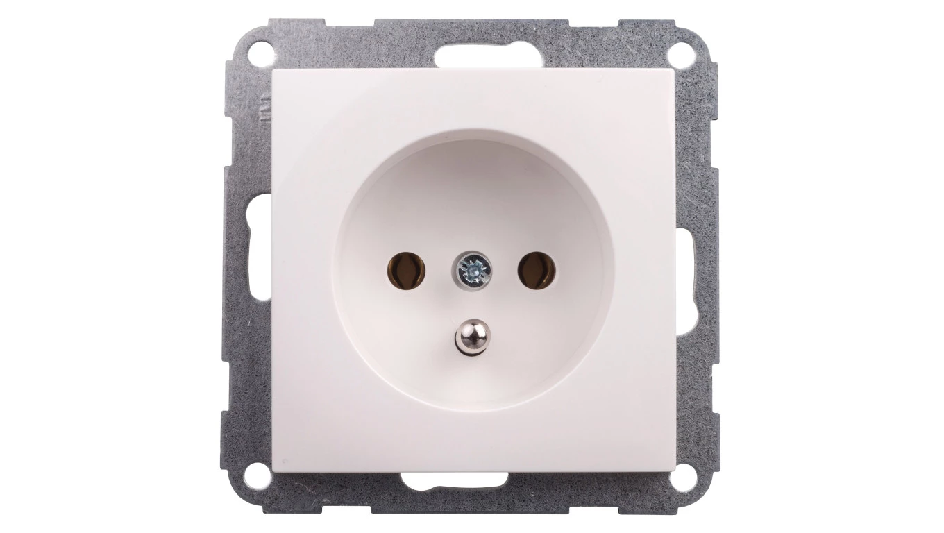 Simon 54 Gniazdo pojedyncze SCHUKO z/u 16A IP20 z przesłoną torów, szybkozłącza, białe DGSz1CZ.01/11