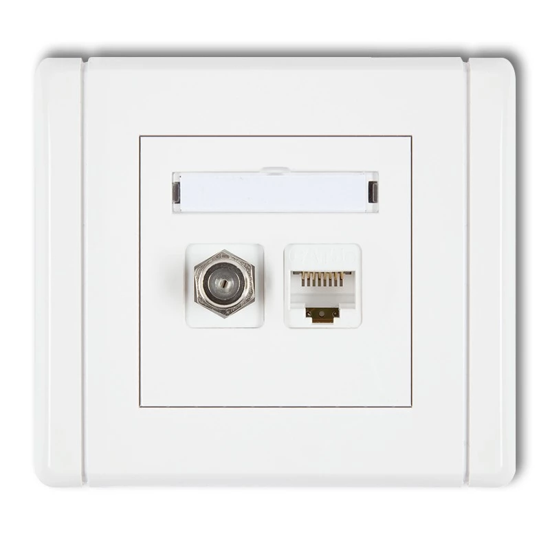 FLEXI Gniazdo antenowe pojedyncze typu F (SAT) + gniazdo komputerowe pojedyncze 1xRJ45 kat. 5e 8-stykowe biały FGFK-1
