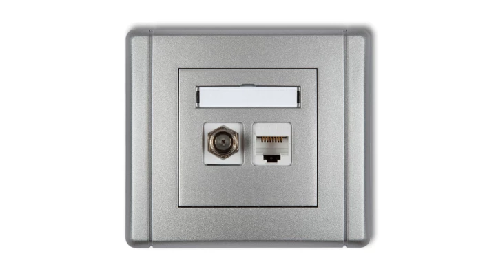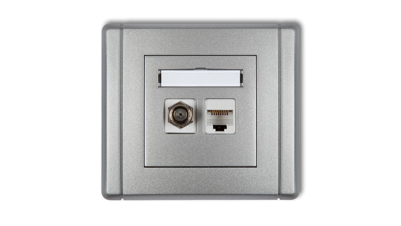 FLEXI Gniazdo antenowe pojedyncze typu F (SAT) + gniazdo komputerowe pojedyncze 1xRJ45 kat. 5e 8-stykowe srebrny metalik 7FGFK-1