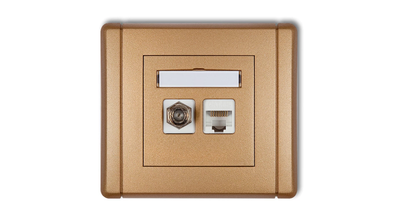 FLEXI Gniazdo antenowe pojedyncze typu F (SAT) + gniazdo komputerowe pojedyncze 1xRJ45 kat. 5e 8-stykowe złoty metalik 8FGFK-1