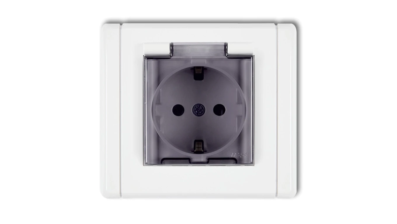 Simon 54 Gniazdo bryzgoszczelne z/u IP44 z klapką transparentną antracyt DGZ1BZ.01/48A