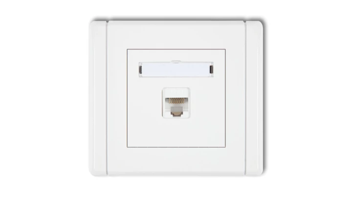 FLEXI Gniazdo antenowe pojedyncze typu F (SAT) + gniazdo komputerowe pojedyncze 1xRJ45 kat. 5e 8-stykowe biały FGFK-1