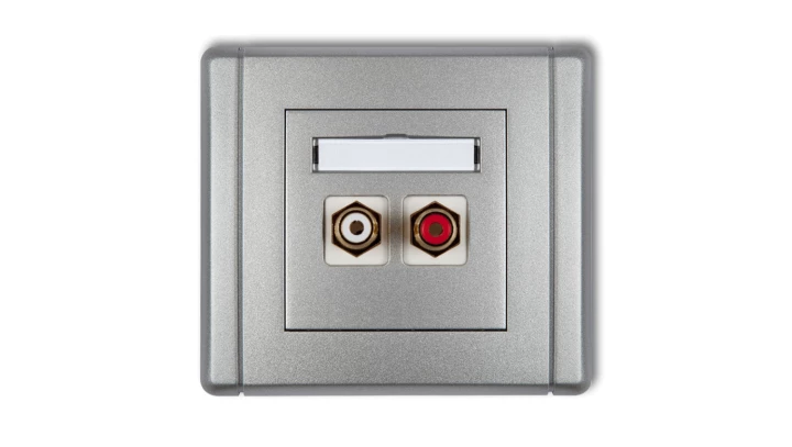 FLEXI Gniazdo podwójne RCA (typu cinch - biały i czerwony, pozłacane) srebrny metalik 7FGRCA-2