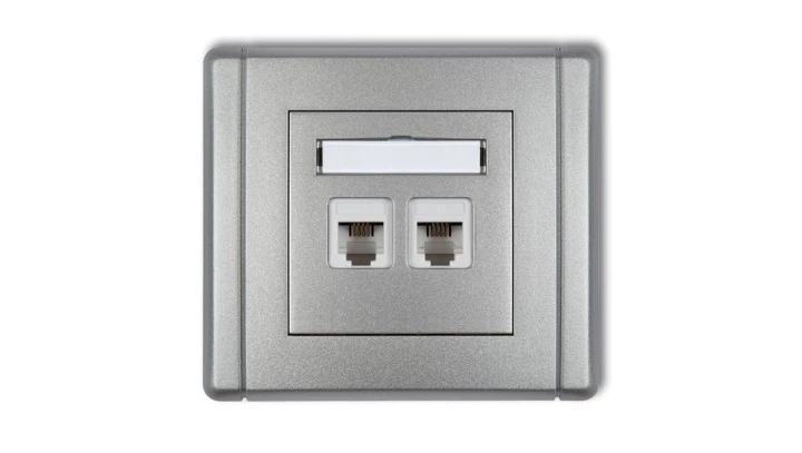 FLEXI Gniazdo telefoniczne podwójne 2xRJ11, 4-stykowe, beznarzędziowe srebrny metalik 7FGT-2