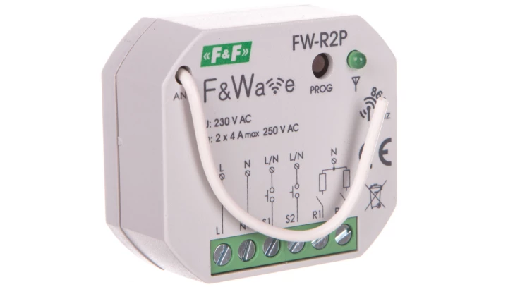 Radiowy podwójny przekaźnik bistabilny - montaż PDT 85÷265V AC/DC o numerze katalogowym FW-R2P w kategorii Przekaźniki - pozostałe, Przekaźniki. Produkt wyprodukowany przez markę F&F, seria F&WAVE.