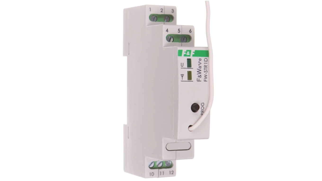 Radiowy sterownik rolet 230V- montaż DIN 85÷265V AC/DC o numerze katalogowym FW-STR1D w kategorii Przekaźniki - pozostałe, Przekaźniki. Produkt wyprodukowany przez markę F&F, seria F&WAVE.