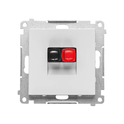 Gniazdo głośnikowe 1-krotne (moduł). Przekrój przewodów dla wejścia i wyjścia 2,5 mm2: Jasnoszary mat, SIMON55 o numerze katalogowym   TGL1.01/114 w kategorii Łączniki i gniazda instalacyjne>Gniazda głośnikowe. Produkt wyprodukowany przez markę KONTAKT-SIMON, seria SIMON 55.