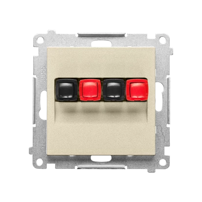 Gniazdo głośnikowe 2-krotne (moduł). Przekrój przewodów dla wejścia i wyjścia 2,5 mm2: Szampański mat, SIMON55 o numerze katalogowym   TGL2.01/144 w kategorii Łączniki i gniazda instalacyjne>Gniazda głośnikowe. Produkt wyprodukowany przez markę KONTAKT-SIMON, seria SIMON 55.