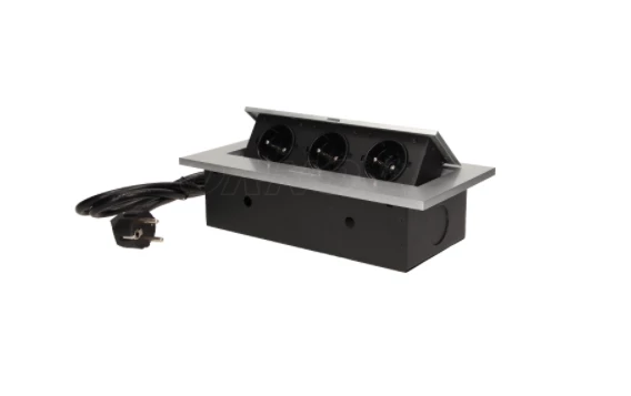 Gniazda wpuszczane w blat 3x230V /gruby rant/ 1,5m srebrne OR-AE-1338/G