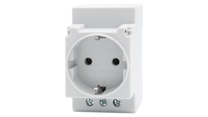 Gniazdo 230V na szynę TH35 SCHUKO o numerze katalogowym   F6.0497 w kategorii Gniazda, wtyki, wyłączniki>Gniazda przenośne. Produkt wyprodukowany przez markę F-ELEKTRO.