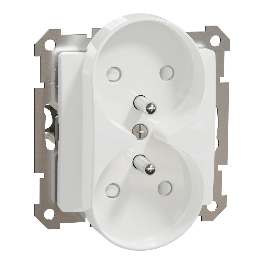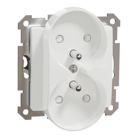 Gniazdo 2x2P+PE z przesł. do systemu ramkowego (do ramek Sedna Elements), białe, Sedna Elements SDD111271