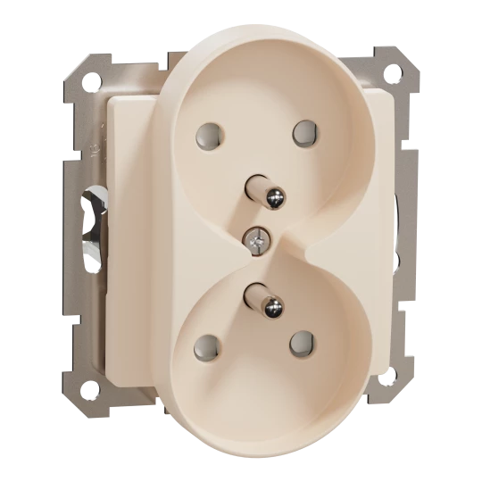 Gniazdo 2x2P+PE z przesłonami do systemu ramkowego (do ramek Sedna Design), beżowy, Sedna Design SDD112275