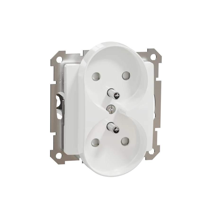 Gniazdo 2x2P+PE z przesłonami do systemu ramkowego (do ramek Sedna Design), białe, Sedna Design SDD111275