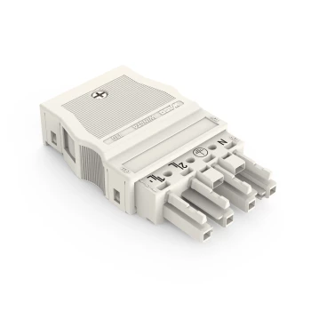 gniazdo; z obudową odciążającą przewody; 4-bieg.; kodowanie A; 4,00 mm²; biały
