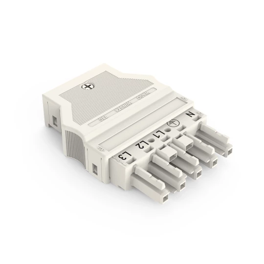gniazdo; z obudową odciążającą przewody; 5-bieg.; kodowanie A; 4,00 mm²; biały