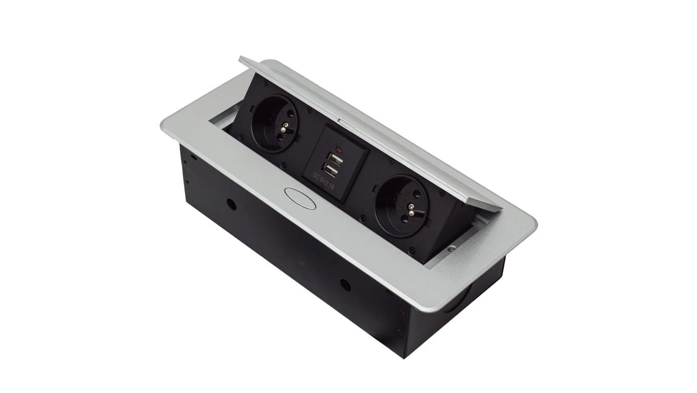 GNIAZDO CHOWANE W BLAT NABLATOWE + 2 USB GNIAZDKO srebrne GB2PL+2-SILVER