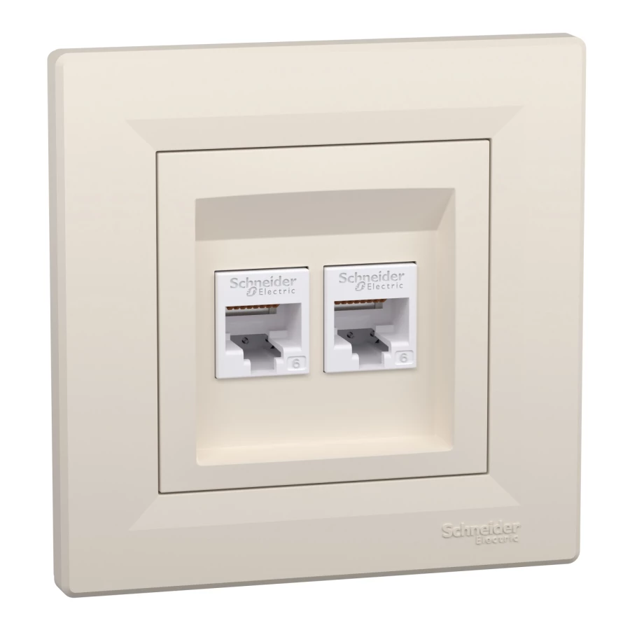 Gniazdo komputerowe Asfora podwójne 2x45RJ kat.6 kremowe z ramką EPH4800123