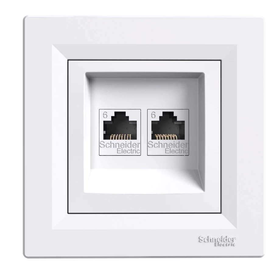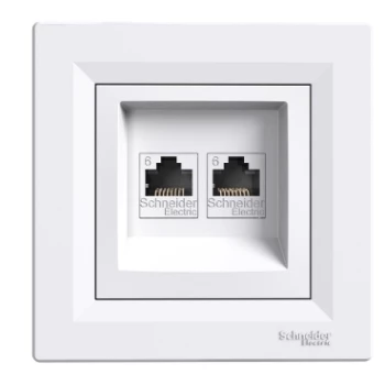 Gniazdo komputerowe podwójne kat.6, białe ASFORA o numerze katalogowym EPH4800121 w kategorii Gniazda teleinformacyjne, multimedialne, Łączniki i gniazda instalacyjne. Produkt wyprodukowany przez markę SCHNEIDER ELECTRIC, seria ASFORA.
