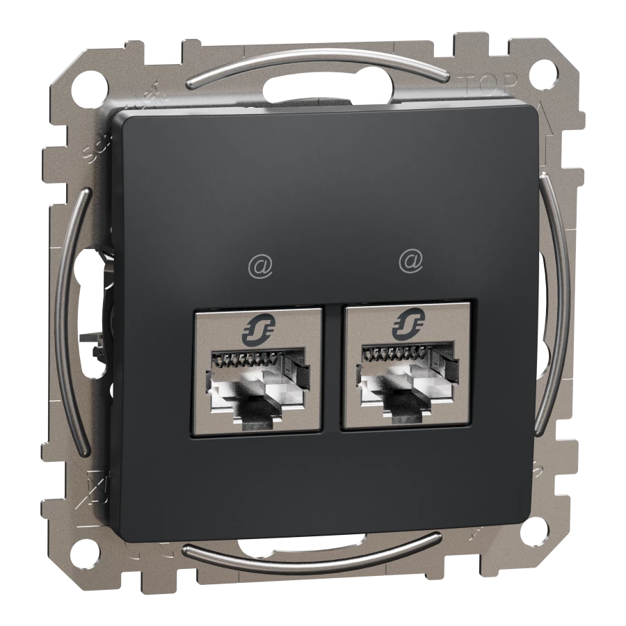 Gniazdo komputerowe 2xRJ45 kat.6 STP, czarny antracyt SEDNA DESIGN o numerze katalogowym SDD114462S w kategorii Gniazda teleinformacyjne, multimedialne, Łączniki i gniazda instalacyjne. Produkt wyprodukowany przez markę SCHNEIDER ELECTRIC, seria SEDNA DESIGN.