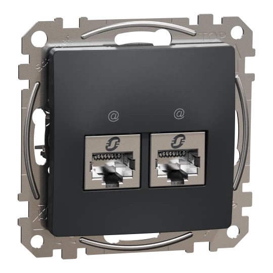 Gniazdo komputerowe podwójne RJ45 kat. 6 STP, czarny antracyt, Sedna Design i Elements SDD114462S