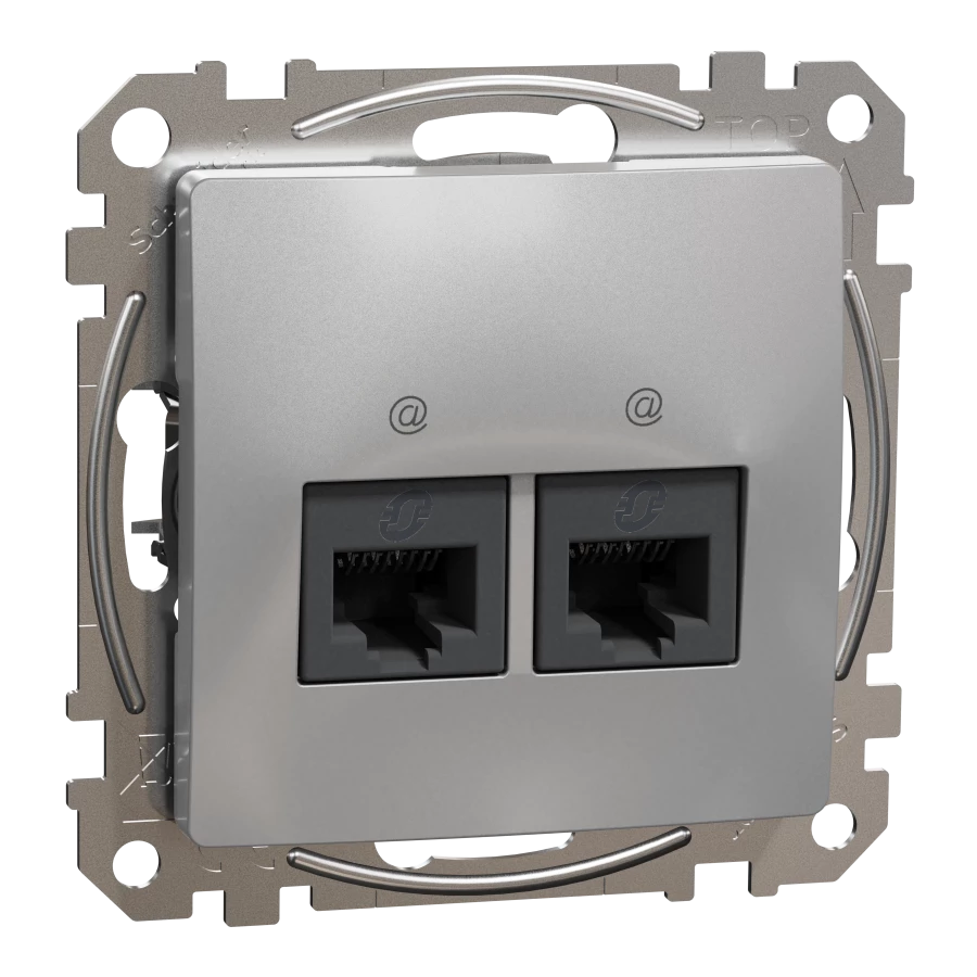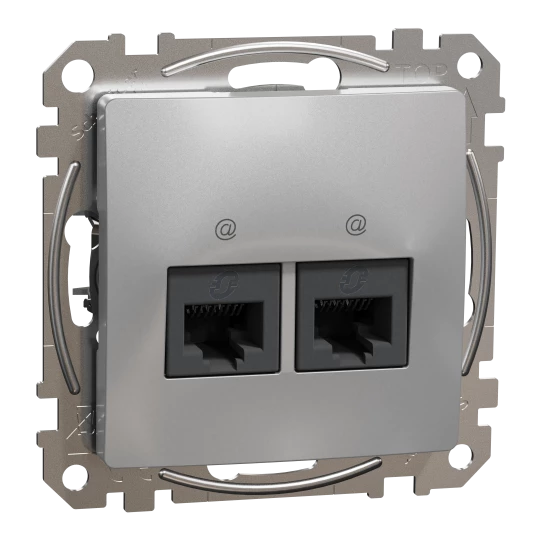 Gniazdo komputerowe 2xRJ45 kat.6 UTP, srebrne aluminium SEDNA DESIGN o numerze katalogowym SDD113462 w kategorii Gniazda teleinformacyjne, multimedialne, Łączniki i gniazda instalacyjne. Produkt wyprodukowany przez markę SCHNEIDER ELECTRIC, seria SEDNA DESIGN.