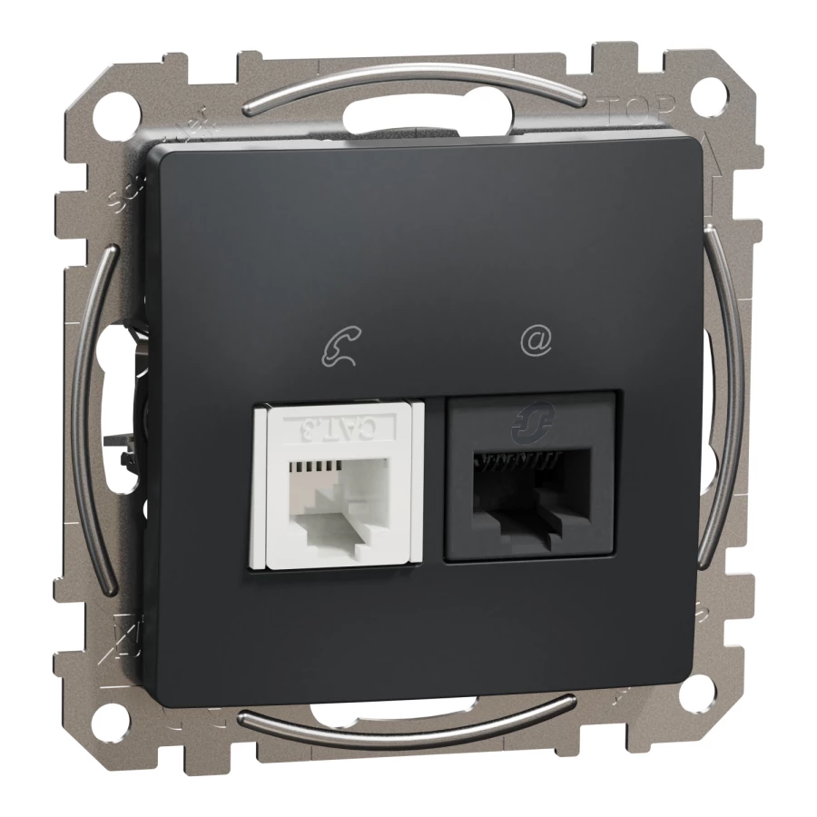 Gniazdo komputerowo-telefoniczne (RJ45 kat.5e UTP + RJ11), czarny antracyt SEDNA DESIGN o numerze katalogowym SDD114458 w kategorii Gniazda teleinformacyjne, multimedialne, Łączniki i gniazda instalacyjne. Produkt wyprodukowany przez markę SCHNEIDER ELECTRIC, seria SEDNA DESIGN.