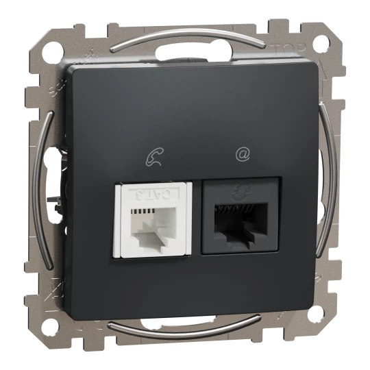 Gniazdo komputerowe-telefoniczne (kat. 5e UTP), czarny antracyt, Sedna Design i Elements SDD114458