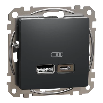 Gniazdo ładowania USB typ A+C 2,4A, czarny antracyt, Sedna Design i Elements SDD114402
